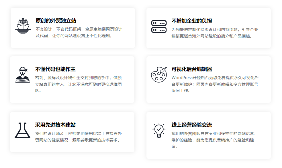 我们始终致力于为国内外贸出口企业进行专业的外贸独立站定制开发;助力外贸企业打造专属品牌私域流量!